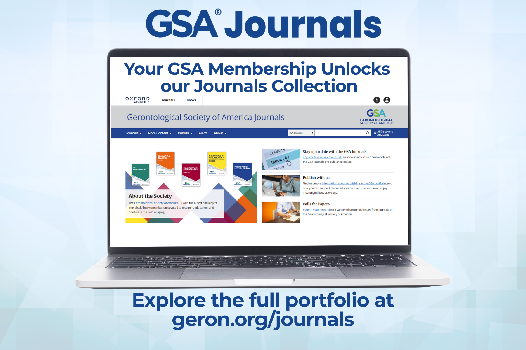Enjoy 24/7 online access to GSA's five scholarly journals, covering comprehensive research on aging.